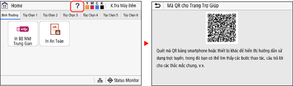 Trên một số màn hình hiển thị mã lỗi hoặc lỗi, bạn sẽ thấy một mã QR mà bạn có thể dùng để truy cập các trang liên quan trong Hướng Dẫn Người Dùng.