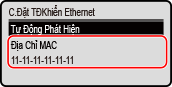 Bạn có thể xem địa chỉ MAC được đặt cho máy khi máy được kết nối với mạng LAN có dây.