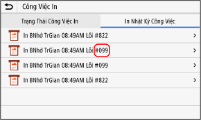 Nếu không thể thực hiện in, hoặc không thể nhận I-Fax, hoặc xảy ra lỗi khác, mã lỗi (gồm ba chữ số bắt đầu bằng “#”) sẽ được hiển thị trong nhật ký công việc.