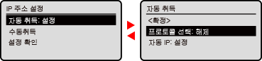 를 사용하여 누른 방향으로 화면을 스크롤합니다. 현재 선택한 항목이 반전됩니다.