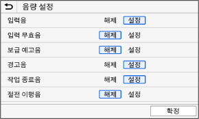 기기에 용지 걸림이나 기타 오작동이 발생할 때 소리가 들리는지 여부를 설정합니다.