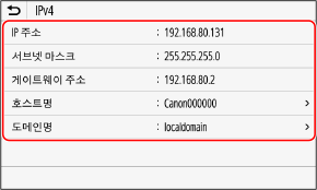 IPv4 주소 및 IPv6 주소와 같이 기기에 설정된 IP 주소의 설정을 볼 수 있습니다.