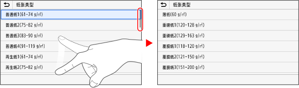 当滚动条出现在屏幕上时,表示屏幕上有无法完整显示的项目或信息。按手指移动的方向滑动或拖动屏幕。