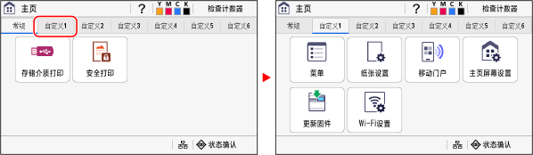 操作面板采用了触摸屏。直接用手指触摸屏幕上显示的按钮和项目即可进行操作。