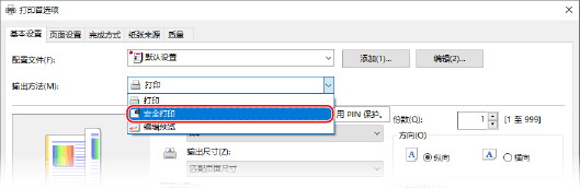 在 [输出方法] 中选择[保密打印]。