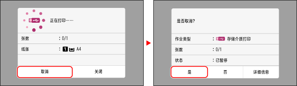 要在使用存储介质打印功能时取消打印,请使用操作面板或远程用户界面。