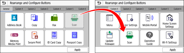 Rearranging the Buttons and Renaming the Tabs (Remote UI)Administrator privileges are required.