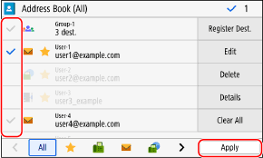 Select the checkboxes of the destinations to specify, and press [Apply].
