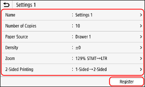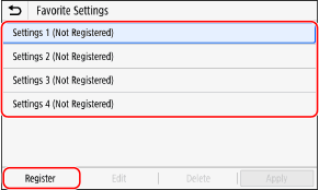 You can register settings according to your purpose and settings you want to recall as "Favorite Settings" for the scan, fax, and copy functions.