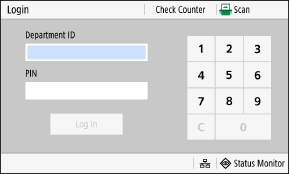 When Department ID Management is set up, the following login screen is displayed. Enter the Department ID to log in. If a PIN is set, enter the PIN.