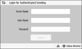 When authenticated sending (LDAP Server Authentication) is set, the Login for Authenticated Sending screen is displayed when performing scan and fax operations. Enter the user name and password managed with the LDAP server to log in.