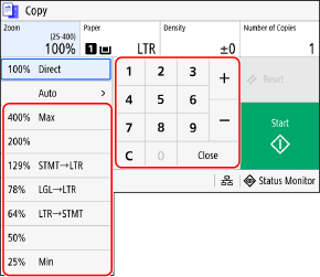 * [Auto Select Paper (LTR/LGL)] is not available when no original is loaded in the feeder or when using [N on 1], [Erase Frame], or [ID Card Copy].