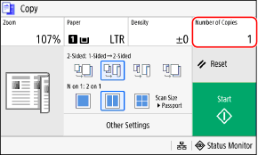 Press [Number of Copies], use the numeric keys to enter the number of copies, and then press [Close].