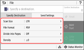 On the [Specify Destination] tab, specify the destination. Specifying Destinations