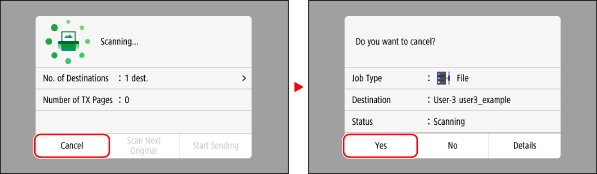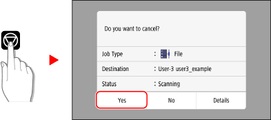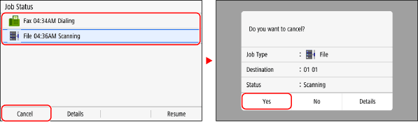 If the job list screen is displayed, select the job to cancel, and press [Cancel]