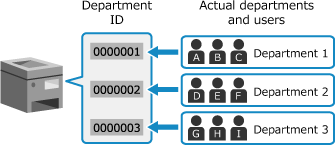 Department ID Management is a function for managing users and groups by allocating a Department ID to each user or group.