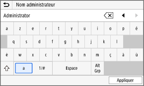 Saisissez des caractères alphanumériques en utilisant le clavier et les touches numériques du panneau de commande.