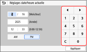 Cliquez sur les chiffres des touches numériques pour saisir une valeur.