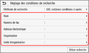 Sélectionnez [Méthode de recherche], puis sélectionnez les conditions de recherche.