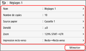 Vérifiez les paramètres, et cliquez sur [Mémoriser].