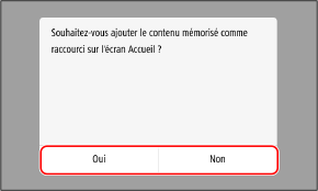 Lorsque vous sélectionnez [Non], le paramétrage favori est enregistré mais un bouton de raccourci n'est pas ajouté. Vous pouvez ajouter un bouton de raccourci à l'écran [Accueil] ultérieurement.