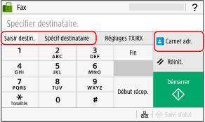 Indiquez le destinataire dans l'onglet [Saisir destin.], l'onglet [Spécif destinataire] ou dans [Carnet adr.].