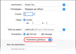 Dans [Imprimante], sélectionnez le pilote de télécopie de l'appareil.