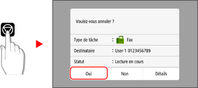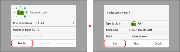 Vous pouvez annuler l'envoi d'un fax en suivant les instructions à l'écran.