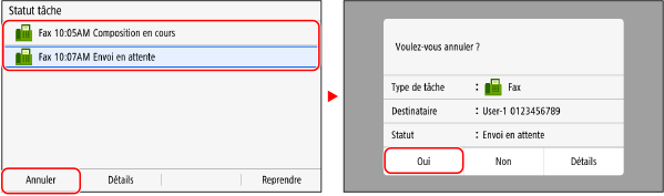 Si l'écran de la liste des tâches s'affiche, sélectionnez la tâche à annuler, puis appuyez sur [Annuler]