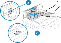 Essuyez les rouleaux à l’intérieur du chargeur et la zone de numérisation de l’original du chargeur pour éliminer la poudre de graphite et la poussière qui y adhèrent.