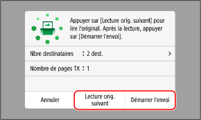 Pour poursuivre la numérisation des originaux, placez-les sur la vitre d'exposition et appuyez sur [Lecture orig. suivant].