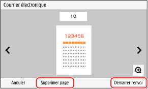 S'il y a des pages que vous ne voulez pas envoyer, ouvrez la page et appuyez sur [Supprimer page].
