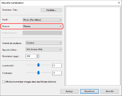 Pour [Scanner ], sélectionnez l'appareil.