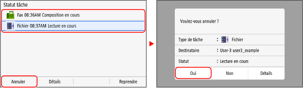 Si l'écran de la liste des tâches s'affiche, sélectionnez la tâche à annuler, puis appuyez sur [Annuler]