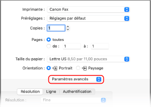 2 | Dans le menu contextuel des options d'impression, sélectionnez [Paramètres avancés]. Si les options ne s'affichent pas, cliquez sur [Afficher les détails] en bas de l'écran. |