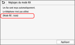 * Si vous êtes abonné à un service de détection de motifs de sonnerie distinctifs (DRPD pour Distinctive Ring Pattern Detection) fourni par votre opérateur téléphonique, [DRPD : Choisir Fax] est également disponible pour le mode de réception.