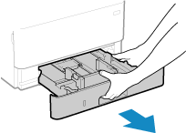Tenez toujours la cassette à papier à deux mains et tirez-le doucement. Si vous tirez la cassette d’une seule main, elle risque d’être trop lourde, de tomber et d’être endommagée.
