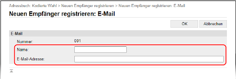 Bearbeiten oder Löschen von registrierten ZielenSie können die registrierten Informationen bearbeiten, indem Sie auf dem Bildschirm in Schritt 4 auf das zu bearbeitende Ziel klicken. Klicken Sie in Schritt 4 auf [Löschen] rechts neben dem Ziel, das Sie löschen möchten, und das Ziel wird gelöscht. Wenn das Ziel im Adressbuch mit "Favoriteneinstellungen" angegeben ist, wird der Bearbeitungs- oder Löschvorgang auch auf "Favoriteneinstellungen" angewendet. Registrieren und Abrufen von Favoriteneinstellungen |