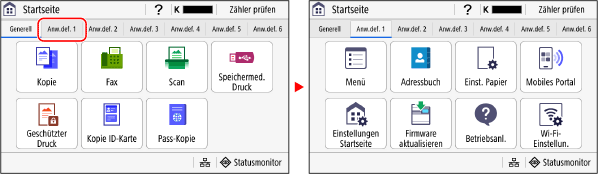Wenn Sie auf eine Registerkarte tippen, wird der Bildschirm für die ausgewählte Registerkarte angezeigt.