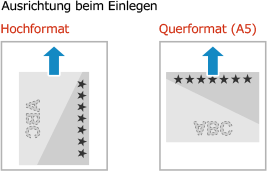 Standardmäßig unterscheiden sich Ausrichtung des einzulegenden Papiers und zu bedruckende Seite, je nachdem, ob Sie eine oder beide Seiten bedrucken möchten.