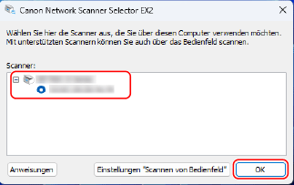 Wählen Sie das Gerät, und klicken Sie auf [OK].