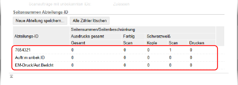 Sehen Sie sich unter [Seitensummen Abteilungs-ID] die Nutzung an.