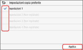 Selezionare le caselle di controllo delle impostazioni che si desidera assegnare come pulsanti di scelta rapida e premere [Applica].