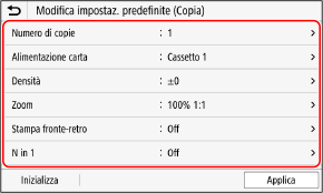 Selezionare le voci di impostazione da modificare, quindi modificare le impostazioni predefinite.