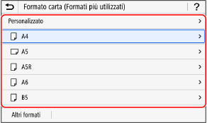 Premere [Altri formati] e selezionare il formato carta dall’elenco visualizzato.