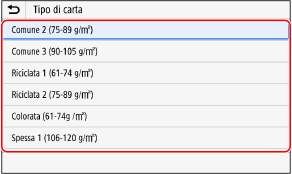 È possibile scorrere la schermata per visualizzare i formati carta non visualizzati sullo schermo.