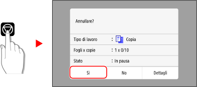 Seguire le istruzioni che appaiono a video per annullare un’operazione di copia.