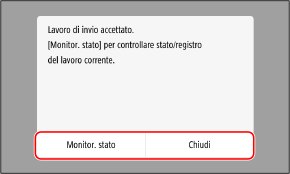 Per visualizzare lo stato di invio e il registro, premere [Monitor. stato].