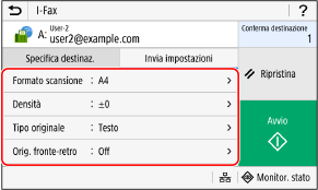 Se la destinazione per l'invio è limitata per via delle impostazioni di autenticazione della funzione Invio, non è consentito specificare un'altra destinazione. Per dettagli, contattare l'amministratore.