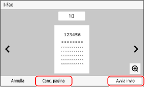Se vi sono pagine che non si desidera inviare, aprirle e premere [Canc. pagina].